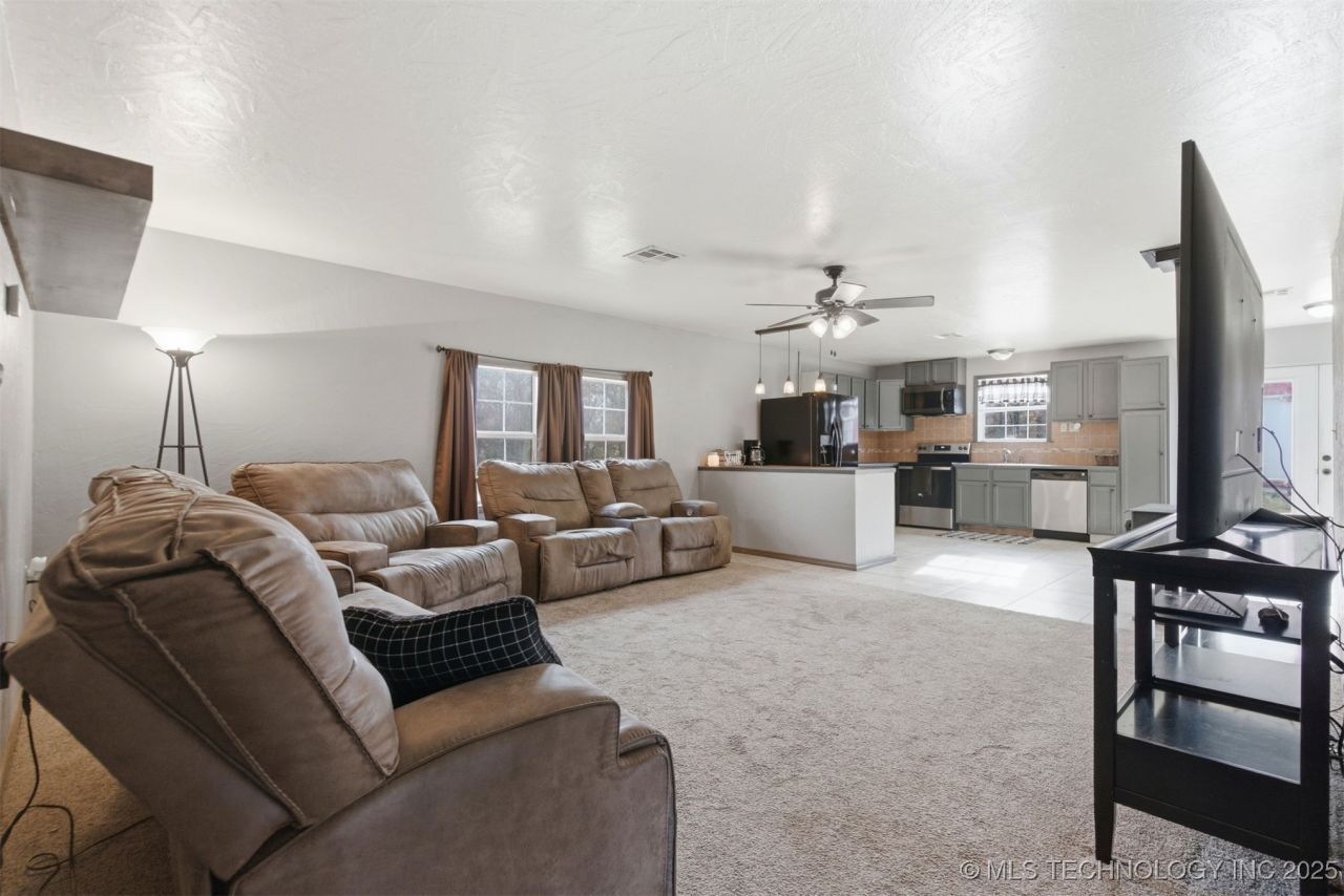 Experience peaceful Oklahoma acreage living on this beautifully maintained 5 bedroom, 3 bathroom barndominium sitting on 6.14 serene acres. This property offers open pasture, mature trees, and endless room to create the hobby farm or homestead you have been dreaming of. The home features a durable metal roof, a cozy wood burning stove, and an inviting open concept layout that blends comfort and function for everyday living and entertaining. Enjoy your mornings on the wraparound porch with scenic views, unwind around the backyard fire pit in the evenings, and take full advantage of the 30 by 30 barn or shop for equipment, vehicles, storage, or workshop needs. The land is perfectly suited for horses, livestock, gardening, and outdoor recreation. The sellers have cared for every detail with annual septic and electrical inspections, offering peace of mind for the next owner. On the front of the land, utilities are available to add a tiny home, modular, or mobile home. It is an ideal setup for extended family, future expansion, or income producing possibilities. Schedule your showing today