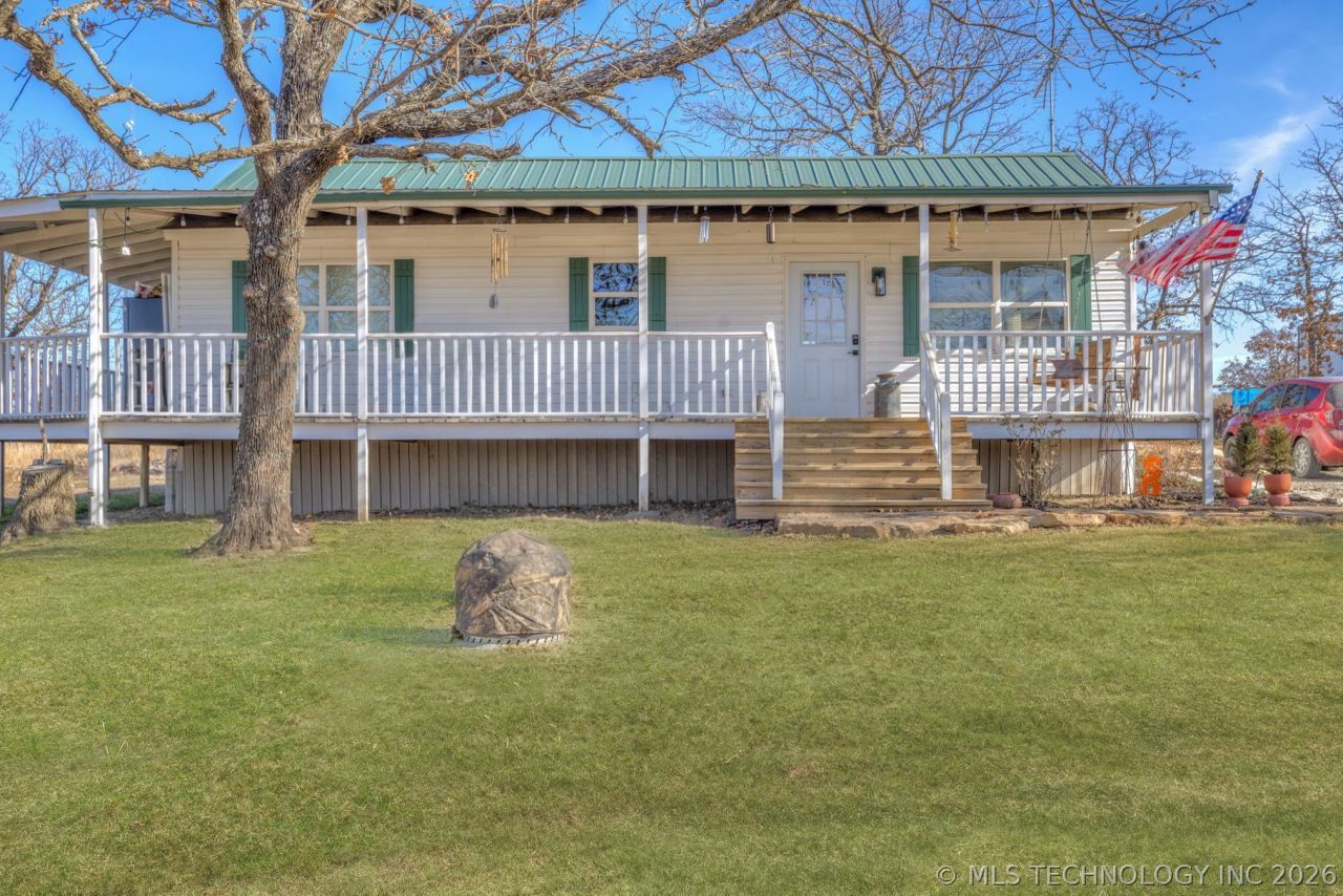 40+/- acres with it's very own farm house cottage! Open concept living, kitchen and dining area or flex space perfect for entertaining or enjoying quiet time. Home is 2 bedroom, 1 bath with newly updated bathroom vanity and flooring. New interior paint. The wraparound windows will certainly give plenty of natural light. Home has a 19 seer mini split for heating and cooling, kitchen island with lots of storage and the wrap around covered porch is approximately 640 sq. ft. giving plenty of space to enjoy those amazing Oklahoma morning sunrises and sunsets. Floored attic with extra insulation. Property also has a 36x40 metal shop with electric and wood stove for year around comfort. Well house has a new well pump and pressure tank as January 2026. The most beautiful sunrise and sunsets and plenty of wildlife! Make sure to look at all the photos! Schedule TODAY!
